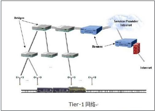 Tier-3网络提供802.11g的无线接入服务。该无线接入可以服务于列车乘客或者其他诸如视频监控和遥感设备的应用。应用流量通过无线mesh网络回程刀Tier-2网络,最终通过Tier-1网络传输回有线网络。
