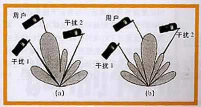 图3自适应阵列智能天线(a)与束转换智能天线(b)的比较