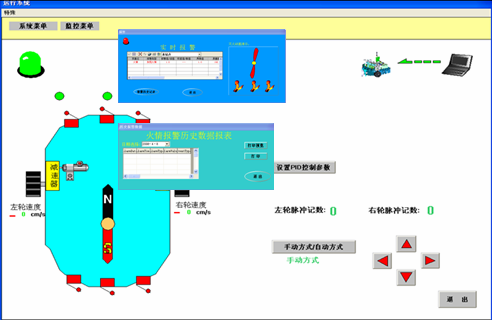 (2)其次完成组态王数据库的访问。本设计采用Access数据库,建立“my.mdb”数据库,并在计算机上配置好数据源。该数据库存放的是火情报警的历史记录。此系统在数据库上有以下功能:①系统启动时,可自行建立表格。②实时记录报警。在报警出现时使用组态王提供的函数,将数据写入所连接的数据库中指定的表格。③按照选择日期条件显示符合日期的历史报警数据。为了方便使用,系统中使用组态王提供的KVDBGrid控件,设置好该控件的属性,就可以实时显示所连接的数据库的数据情况。查询所使用的控件是组态王提供的日期控件。在进行历史数据查询时,可以根据所选择的日期条件显示出对应的历史数据。
