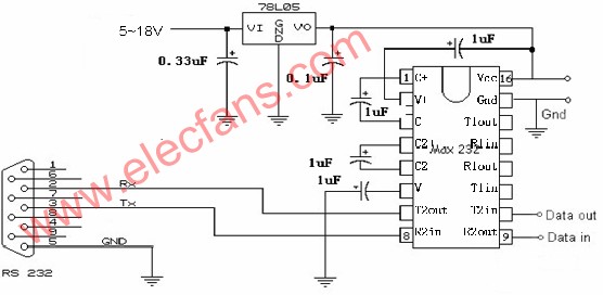 (1) 首先制作RS-232电平和TTL电平的双向转换电路。由于PC机使用