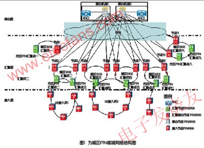 城域网骨干层一般由DWDM/OTN系统承载,实现节点之间传输链路的保护。传统的MSTP汇聚层网络已不适应大颗粒业务发展需求,通过PTN网络可以很好地解决城域汇聚层中存在的问题,主要扩容汇聚层BRAS/SR/OLT网络之间的链路带宽、提升设备性能和容量,PTN网络还可以实现接入点之间的传输链路保护、优化网络结构和实现城域网的多业务承载。