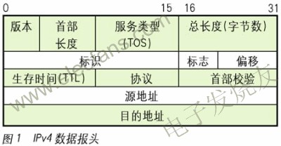 在IPv4协议中,ip数据报头(见图1)包含了一个8b的服务类型(type of service,tos)字段。在tos字段中,包含了3b的优先权子字段(现在已被忽略)、4b的tos子字段和1b的保留子字段。4b的tos子字段分别用于表示最小时延、最大吞吐量、最高可靠性和最小费用。在一个业务数据流当中,这个字段只能有1b置为1,如果没有比特位被置1,则表示这个业务数据是一般服务。在rfc1340和rfc1349中描述了所有的标准应用如何设置这些服务类型,但是在实际应用中,绝大多数tcp/ip的实现应用都不支持和使用tos字段。