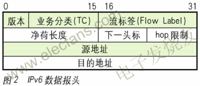在IPv6协议的数据报头(见图2)中,对8b的tos字段进行了调整。最早在rfc1883中定义了4b的优先级字段,可以区分16个不同的优先级。后来在rfc2460中改为8b的业务类别(traffic class)字段,其目的是允许发送业务流的源节点和转发业务流的路由器在数据包上加上标记进行不同处理,但并没有具体说明这个字段如何使用。另外,在IPv6数据报头当中还有一个新的20b的流标签,用于标记某个业务数据流的ip包序列,以便路由器能够提供qos或实时服务。一般来说,在所选择的链路上,可以根据开销、带宽、延时或其他特性对数据包进行特殊的处理。但同样,流标签并没有表明qos的提供方式。