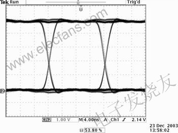 图2 图1输出的20Mbps眼图,最高可达62.5Mbps