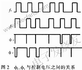 第一本振振荡器用来提供信道所需要的混频信号。该部分由DDS和锁相环构成,锁相环采用MCl45158,其内部由选择参考分频比、可编程频率分频电路、相位检测器和数字式分频器组成,相位检测器输出的信号分别为φr,和φv,它们反映已分频的标准信号和已分频的VCO频率之间的相位关系,当2个信号频率相等时,即本地处于锁定状态,φr和φv都有很窄的负脉冲出现;如果VCO的输出频率fv大于参考频率fr,或者相位超前,φv出现负脉冲;如果VCO频率小于参考频率,或者相位滞后,φr输出负脉冲。当两者的频率和相位相同时,φr、φv输出同为高电平,这时环路达到稳定,也称环路的锁定状态,φr、φv与fr、fv之间的关系如图2所示。