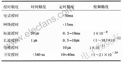 表1是授时精度比较