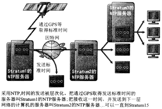 RFC1305规定系统配置一套最高15层服务器的系统,每层时间服务器的精度以Stratum定义,Stratum1时钟精度大约比授时信号差10倍,按照系统和设备时间精度需求,选择级别和传输技术。