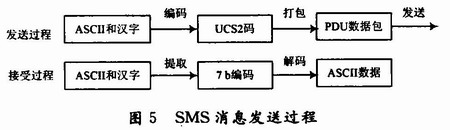 SMS消息的发送一般采用PDU(protocol dataunit)模式,如图5所示。