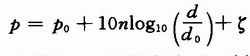 无线信号传输中普遍采用的理论模型为Shadowing模型。该模型为: