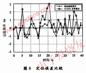 由图6可以看出,经过线性回归分析和高斯滤波,然后用泰勒级数展开,最终求得位置误差大约在1 m左右,而CC2431的定位误差在2~3 m左右。本文提出的定位算法较好地改善了定位效果,使定位误差主要集中在1 m左右,基本能够满足室内定位对误差的要求,提高了定位精度。