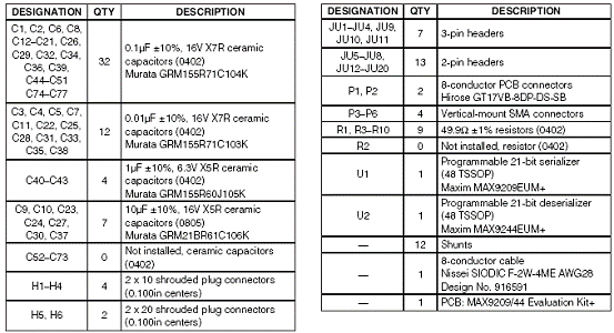 PCB and come with a MAX9209EUM+ and a MAX9244EUM+ installed.
