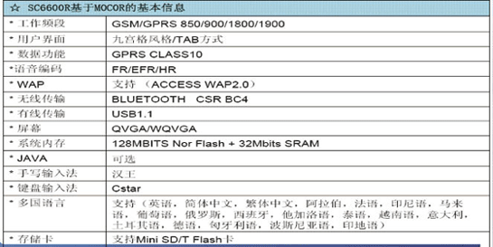 信息Spreadtrum SC6600R主要特性