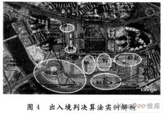 图4以口岸实际地图为例,演示了出入境判决算法的基本原理: