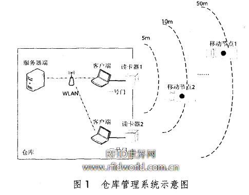 根据实现的方式不同,RFID 可分为两类:有源RFID和无源RFID。无源RFID 的电子标签上不带电池,其工作所需要的全部电源都依靠转换接收到的阅读器发送的电磁波而获得,所以其阅读器的发射功率一般较大。与之相反,有源RFID 的电子标签自身具备电池,可提供全部器件工作的电源,因而相应阅读器的发射功率要求不高,而且有效阅读距离也较前者有所增加。本文提出的仓库管理系统,考虑到有源RFID的上述优点,基于此技术实现。