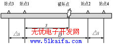 如果DSC接收到管线上下游各监测站点的报文信息,解码提取声波信号传播至各站点的时刻后,经程序简单处理,对破坏方式进行识别,并由公式(6)可以对破坏点进行精确定位,理论误差小于1m。