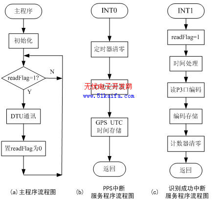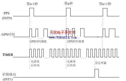 选用Trimble Lassen SQ/IQ GPS接收模块,使用NEMA0183格式的GPZDA数据信息。当GPS接收器与GPS时钟同步后,即会接收到信息。其格式为$ GPZDA,hhmmss.ss,xx,xx,xxxx,,*hh。信息包含时,分,秒,日,月,年以及加和校验等。