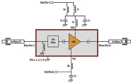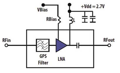 低噪声指数、高增益以及低电流消耗特性使其适用于关键的低功耗GPS应用或者低电量情形。