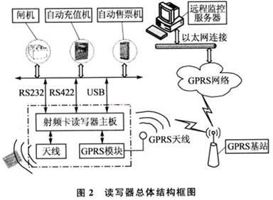 终端设备是直接为乘客提供售检票的设备,乘客通过射频卡可以购买票卡、进出闸机、为票卡充值,而建立射频卡与终端设备的桥梁就是射频卡读写器。射频卡读写器作为与射频卡通信的核心,其性能和数据处理能力直接影响到整个地铁AFC系统的工作质量。图2为读写器总体结构图。
