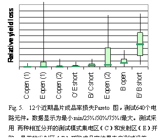 工艺的设计考虑到性能、可靠性和可生产性之间的平衡。从成品率 损失Pareto 图 Fig. 5 中可以看出发射区/基区短路是影响成品率的主要原因,基区电极柱损失是影响远小于发射区/基区短路的第二个原因。影响成品率的其它失效模式的影响相对较小,都在测试不确定范围内。由500个晶体管组成的典型电路所达到的成品率已能够满足小规模仪器的应用应用。