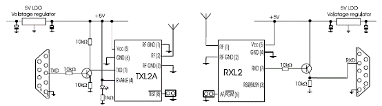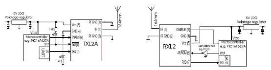 TXL2和RXL2模块是Radiometrix 公司的9600波特多路OEM无线调制解调器,工作频率为欧洲的433MHz ISM频段,提供单向无线电连接方案. TXL2/RXL2与EN 300 220-3 和EN 301 489-3 兼容,具有高质量稳定的基准晶体和低噪音合成器/VCO,以及SAW前端滤波器和多级陶瓷IF滤波,发送功率+10dBm,接收灵敏度-107dBm,主要应用在手持终端,PDA,工业远程信息处理,建筑物内环境检测和控制,远程数据采集系统,舰艇,汽车数据采集等.本文介绍了TXL2和RXL2主要特性,指标和方框图,以及和MCU直接连接框图, 通过RS232线路驱动器/接收器连接到RS232端口框图.