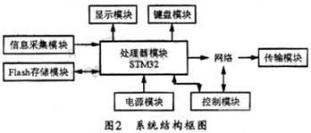 本系统的硬件可分为采集模块、处理模块、键盘和显示模块、传输模块、控制模块和供电模块等。其中采集模块负责采集信息;处理模块负责控制整个系统的工作,处理和存储采集到的信息,控制模块则可以进行相应的控制;键盘和显示模块负责显示相关信息以提示现场人员操作;网络传输模块负责信息与数据服务器进行信息交互;供电模块负责为整个系统供电。图2所示是系统的结构框图。通过这种结构可以自主开发出一套高性价比、低成本、低功耗、开发周期短、运行速度快、可靠性高、功能齐全、扩展性强的网络控制终端。