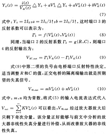 因为三阶分量和五阶分量是对放大器非线性影响最大的因素,为了分析方便,就只取到展开式的5次方项。这时二极管对可看作为单端口网络,其导纳为: