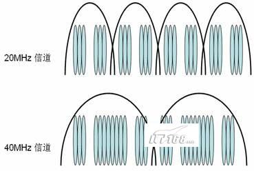 IEEE 802.11n通过将两个相邻的20MHz带宽捆绑在一起组成一个40MHz通讯带宽,在实际工作时可以作为两个20MHz的带宽使用(一个为主带宽,一个为次带宽,收发数据时既可以40MHz的带宽工作,也可以单个20MHz带宽工作),这样可将速率提高一倍。同时,对于IEEE 802.11a/b/g,为了防止相邻信道干扰,20MHz带宽的信道在其两侧预留了一小部分的带宽边界。而通过频带绑定技术,这些预留的带宽也可以用来通讯,从而进一步提高了吞吐量。