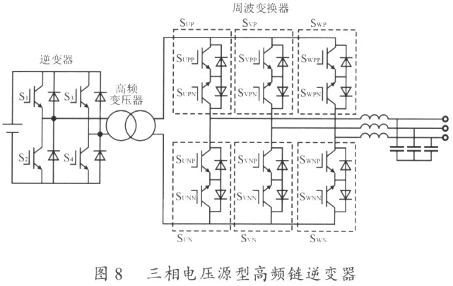 高频链逆变技术用高频变压器替代了低频逆变技术中的工频变压器,克服了低频逆变技术的缺点,显著提高了逆变器的符性。高频链逆变技术按功率的传输方向可分为单向型和双向型,按功率变换器的类型町分为电压源型和电流源型。