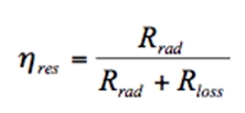 当天线处于谐振状态时,效率η可以表示为: