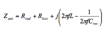 谐振频率是指天线将电磁波转换成电压的效率最高的频率点。天线效率是Rrad上的功率与天线收到的总功率的比值,可以表示为Rrad/Zant,其中Zant是带天线谐振网络的天线阻抗。Zant表示为:
