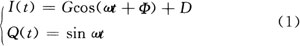 上式中G,φ,D分别为I(t)和Q(t)信号之间的归一化幅度比、正交相位误差和直流偏移误差。我们定义载波信号如下: