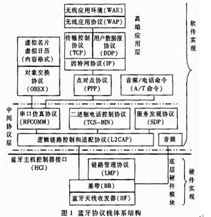 蓝牙技术产品是采用低能耗无线电通信技术来实现语音、数据和视频传输的,其传输速率最高为每秒1Mb/s,以时分方式进行全双工通信,通信距离为10米左右,配置功率放大器可以使通信距离进一步增加。