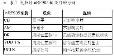 发射时nRF905的分析情况如表1所示。