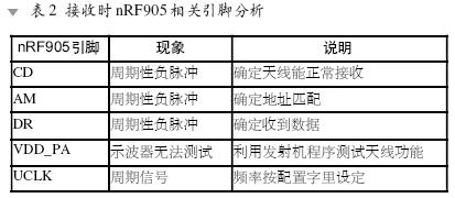 接收时nRF905的分析情况如表2所示。