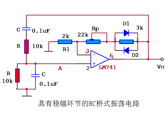 将稳幅环节接入电路中,调节电位器Rp,用示波器观察振荡电路的输出波形,观察振荡电路的输出波形的变化,我们就会明白稳幅环节对正弦波振荡电路性能的影响。