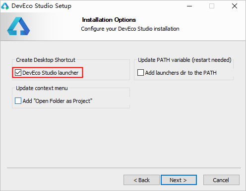 DevEco Studio 的编译构建依赖 JDK,DevEco Studio 预置了 Open JDK,版本为 1.8,安装过程中会自动安装 JDK。