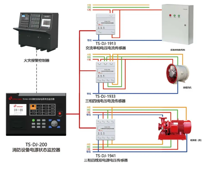 消防电源监控系统是一种实时监控消防设备电源状态的智能化系统,它集成了工业计算机技术、通信、抗电磁干扰、数字传感技术等。该系统主要由消防设备电源状态监控主机、监控模块、电压传感器、电流传感器、电压/电流传感器等部分或全部设备组成。