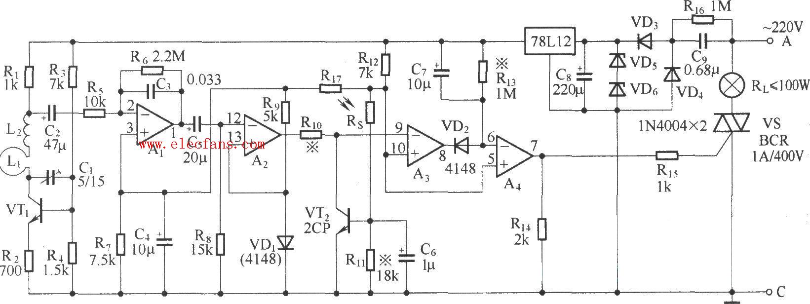 雷达式节能灯座实质上是一种人体微波传感开关.当有人走进有效范围内时,电灯自动点亮,延时一段时间后在自动关闭.如果人体一直在这个范围内活动,电灯持续点亮.雷达式节能灯还具有光控功能,使电灯只在晚上工作.如图是雷达式节能灯座电路原理图: