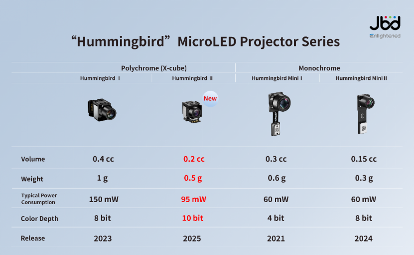 JBD“蜂鸟”MicroLED光引擎家族