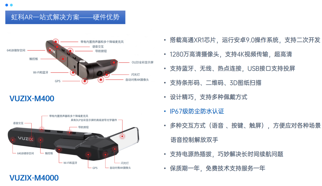硬件:虹科AR智能眼镜,M400和M4000、下一代新产品Shield