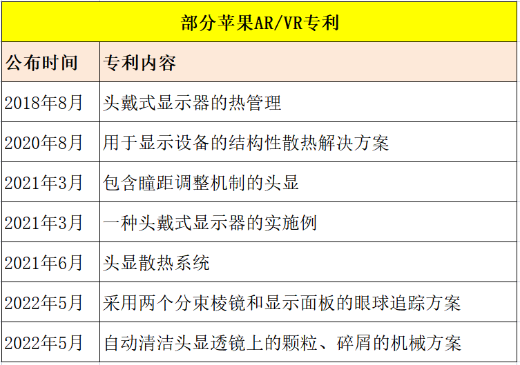 部分苹果AR/VR专利(电子发烧友网根据公开资料制图)