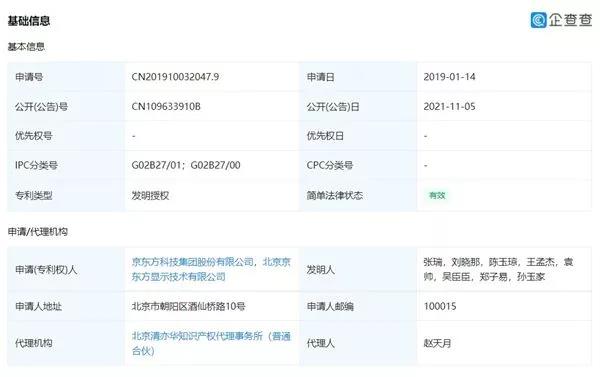 值得注意的是,该专利申请于2019年1月,申请人还包括北京京东方显示技术有限公司。可以发现,京东方在VR领域的技术布局一直在推进,早在2016年,就已经推出了AR显示屏和UHD AR/VR显示屏,均为2.8英寸,是当时iPhone6 Plus的4倍像素。布局至今,京东方已经掌握了AR/VR领域的相关技术,今年9月,京东方的VR、AR等领域的显示产品已经开始出货,包括VR/AR显示模组及系统解决方案等。