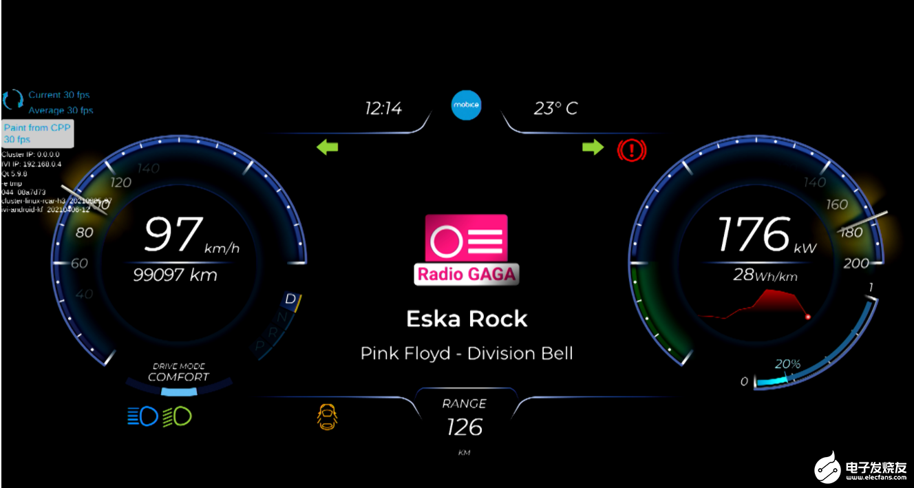 Imagination和Mobica利用两个大型显示器来模拟带有中央仪表盘和车载信息娱乐(IVI)系统的汽车座舱场景。通过使用单PowerVR GPU核,他们可以在显示器上展示高分辨率渲染输出。借助 HyperLane 技术和硬件虚拟化功能,可对操作系统和其他显示系统进行划分。最多可支持八个虚拟“容器”,允许多个操作系统和应用以完全安全的方式彼此独立运行,而且不会损失性能。