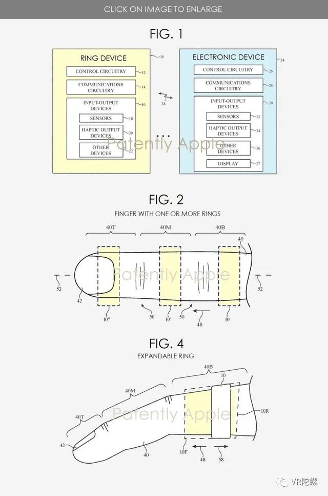 苹果专利附图说明图1是环形装置的说明性系统的示意图。图2是使用者的说明性手指的俯视图,在该使用者的手指上已经放置了环形装置。图4是在手指上的示例性可扩展环装置的侧视图。