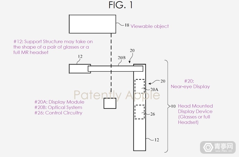 根据专利描述,苹果在未来智能眼镜中采用的光学系统极具挑战性。未来AR或VR眼镜将具备一个或多个近眼显示模组,而显示的图像来源则包括计算机生成的图像与现实中的环境。