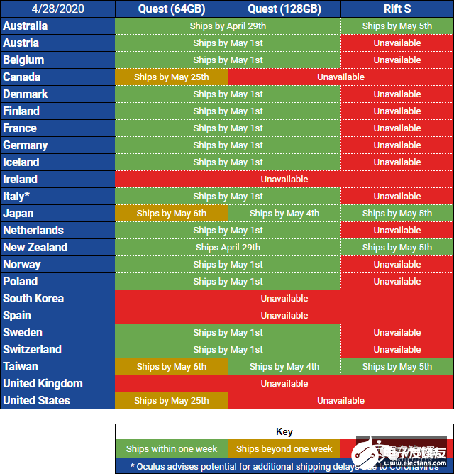 从Oculus直接购买的发货速度似乎比零售商快。在美国,Quest和Rift S在所有官方零售商处仍然处于销售一空的状态(尽管像亚马逊这样的商店向卖家提供的头显的收费要比厂商建议零售价高得多)。