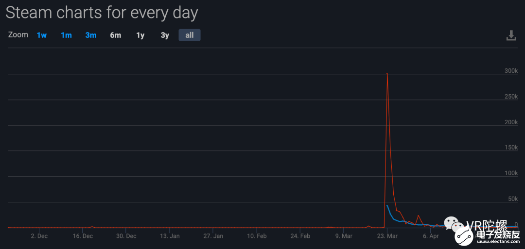 被称为首款3A大作的《半衰期:爱莉克斯》(Half-life:Alyx)自3月26日上线,创下最高4.28万人同时在线的佳绩,有数据称《半衰期:爱莉克斯》3月营收达4070万美元,收获86万玩家。