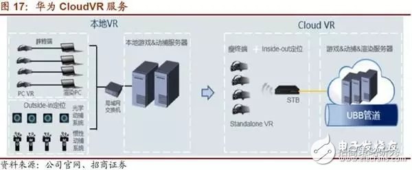 除了上述两个最为影响用户使用体验的问题将得到极大改善外,5G还将推动VR/AR设备实现无线化、轻量化,并有效降低生产成本。在5G出现前,VR/AR设备受限于4G传输速率和时延的影响,在接入方式上通常采用HDMI线缆连接,这极大限制了设备的使用范围和使用场景,而在5G支持下,VR/AR设备将实现无线化,拥有更灵活的接入方式,可以满足多个场景的应用。此外,5G的高传输速率还将推动VR/AR设备的数据传输、计算和存储等功能向云端转移。这一改变将降低设备端的计算压力,节省VR/AR设备上的计算模块,使设备更加轻量化,同时降低设备的生产成本。