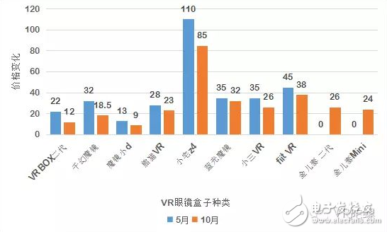 价格波动是VR陀螺调查的第二个角度,但是现在的VR盒子市场谈价“色变”,VR陀螺对比了今年5月份和10月份的价格。