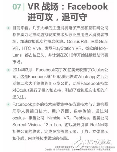 Facebook以20亿美元的价格收购Oculus,Google 已经向Magic Leap投资14亿美元。Microsoft, HTC/Valve, Sony, Samsung和其他巨头也纷纷在AR/VR圈地。